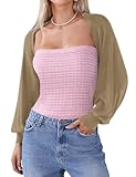 Totatuit Bolero Cárdigan corto festivo para mujer Cárdigan elegante con frente abierto Bolero Manga larga Chaqueta ligera Boleros Chaqueta bolero camello M