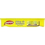 Saupiquet – Filetes de sardina, adobo, limón, albahaca, sin aceite, 100 g – Tres artículos